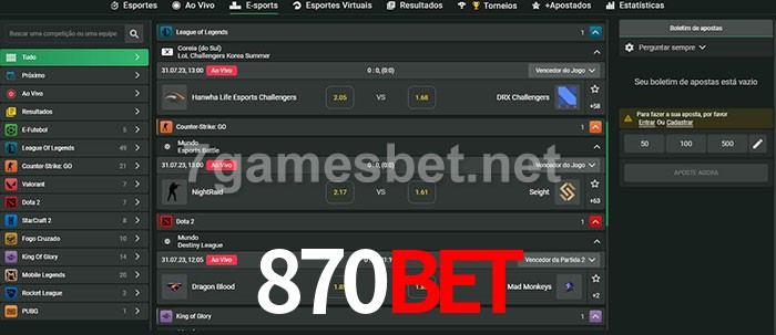 A aposta 870bet oferece aos jogadores a experiência mais conveniente de apostas em eSports!